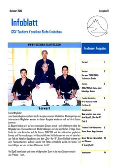 Das Infoblatt mit Informationen und Hintergründe über das Yoseikan Budo andere Kampfkünste, Fitnesstips, Vereinsinformationen und interessante themenbezogene Geschichten. Das Infoblatt kommt 3-4 x jährlich veröffentlicht.