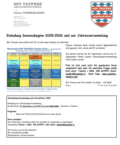 Wie geht es ab jetzt mit dem Training in der Sektion Yoseikan Budo im SSV Taufers weiter?: