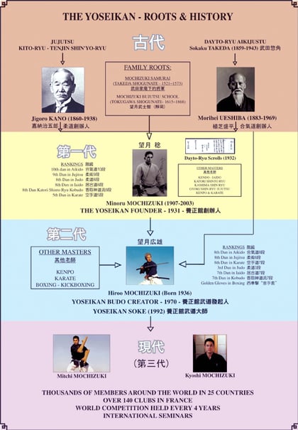 M° Hiroo Mochizuki wohnt derzeit in Aix en Provence. Er und seine zwei Söhne Mitchi und Kyoshi bereisen von dort aus die Welt um Yoseikan Budo zu unterrichten.